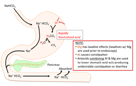In stomach it increases the pH and neutralizes the gastric acid, which relieves the hyperacidity problems.